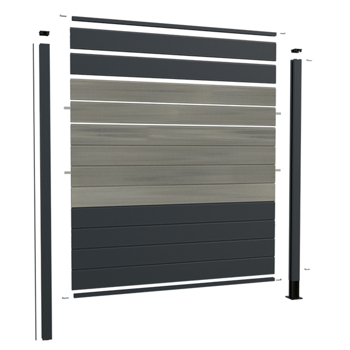 Les lames emboîtables en aluminium OPALE sont idéales pour obtenir une clôture discrète et élégante. Elles s'associent aux lames en bois composite, afin de créer un contraste chaleureux, ou bien aux lames OPEN pour un effet aéré. Les lames OPALE peuvent être équipées d'appliques lumineuses.
